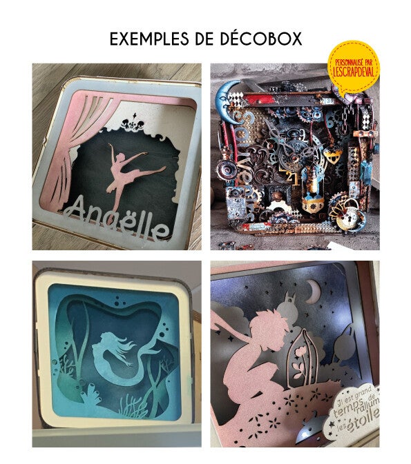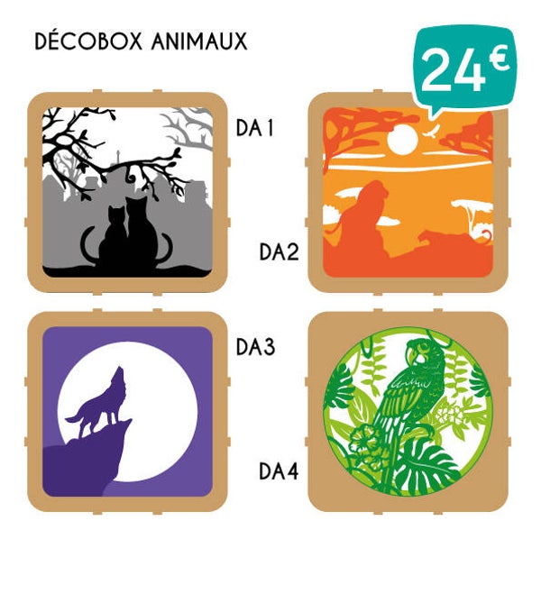 Composée de 4 plaques (les deux du milieu composent le thème), de 4 tranches, découpées dans du carton bois 2 mm. Elles sont livrées en kit non montées et non teintées.